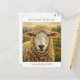 A cute postcard to keep in touch with someone and say hi and I miss you, with a cute ewe pun with an adorable impasto style sheep on an old rustic farm looking at you.