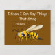 This humorous design features a bold yellow and black wasp illustration with a humble "I’m sorry" speech bubble. With the witty pun, "I know I say things that can sting," and a request for forgiveness regarding a "sharp tongue" on the reverse, it’s the perfect way to offer an olive branch with a side of self-deprecating humor. Ideal for anyone who occasionally lets their stinger out! generativecontent.