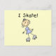 Un lindo diseño de figura de palo con un patinador de rodillos chica en camisetas de patinaje sobre patines I Skate, caramelos, tarjetas, tazas, bolsos, cadenas de claves, imanes, botones y mucho más.
