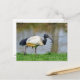 Ibis sagrado africano (Threskiornis aethiopicus), vista de perfil, caminar sobre la hierba a orillas del estanque