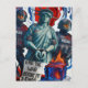 A surreal scene with the statue of liberty being arrested by the police for protesting, an icecube on fire and a protest sign