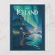 Postal Iceland Northern Lights Illustration Travel Art Vi