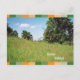 Ich bin Postkarten, Sommer en Farbe. Die Karte Ich bin fröhlich zeigt eine Sommerwiese mit blauem Himmel und Bäumen im Hintergrund.