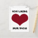 Postal ICH LIEBE NUR DICH - rotes Herz