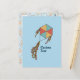 Icono de cometa en paleta de color vintage. Fondo azul claro. Texto personalizado.