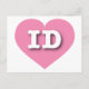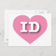 Esta tarjeta postal contiene un vibrante corazón rosado que contiene la identificación de las letras negrita, blanca y alta del funda, la abreviatura oficial del estado de Idaho, el estado de la gema. El reverso de la postal está en blanco esperando tus sentimientos escritos a mano o texto personalizado. Elija el estilo de fuente, el tamaño y el color.