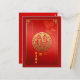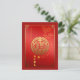 Gran ideograma dorado Fu de buena suerte o fortuna + auspicioso nubes chinas + Feliz Año Nuevo Chino + deseos en chino + Año del buey y pequeño papel de buey cortado en color gradiente rojo como fondo. Diseño en postal vertical con el mismo ideograma y nubes auspiciosas dentro de la tarjeta. Tarjeta de saludo coincidente.
