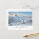 Postal Iglesia cubierta de nieve con fondo de montaña