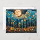 Postal Ilustracion acuático abstracto de luna llena