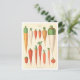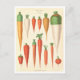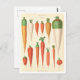 Esta postal presenta un ilustracion botánico vintage del catálogo de semillas de Benary que muestra diferentes tipos de zanahorias.