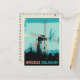 Un gran regalo para todos los amantes de Brujas ideal para ofrecer o enviar a un amigo, una bonita postal retro original de ilustracion con vistas al molino de viento en Brujas Bélgica