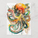 Postal Ilustracion de acuarela abstracta de un pulpo