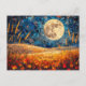 Postal Ilustracion de acuarela abstracta sobre luna llena
