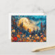Postal Ilustracion de acuarela abstracta sobre luna llena