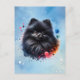 Postal Ilustracion de acuarela de pomerania negra