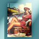 Postal Ilustracion de anclaje de avión antiguo