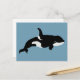 Postal Ilustración de ballena Orca Cetacea Azul