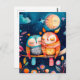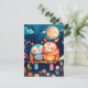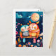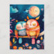 Postal Ilustracion de búhos abrazándose en el bosque por