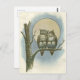 Postal Ilustracion de búhos de época