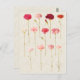 Postcard con un ilustracion vintage de claveles rosados y rojos del Codex Gottorfer, 1649-1659. Limpiado digitalmente y mejorado para que parezca una acuarela sobre un fondo de textura antiguo de color claro que es de época.