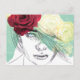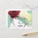 Un ilustracion retro vintage de un chica con un gorra vintage con una gran flor roja. Este diseño retro es elegante, elegante y elegante, con un toque de moda vintage.