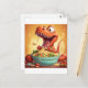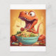Un ilustracion digital de un dinosaurio personalizado comiendo fideos de una manera descuidada.