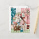 Postal Ilustración de lectura en casa rosa y acogedora co