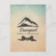 Una rústica invitación postal para una reunión familiar. Diseñado con un boceto sencillo de algunas montañas. Detrás de estas cumbres se pueden ver rayos de sol emanando hacia afuera. Colocado en un fondo de color pergamino con un poco de azul mezclado en la parte superior. Personaliza con tu apellido, y año. El año se prepara con una elegante cinta dibujada a mano. El tema de la montaña sería genial para una reunión informal que se celebraba en un ambiente de cabaña o camping.