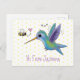 Este lindo diseño presenta un colibrí verde y morado feliz con un amigo abeja en un fondo polka punto amarillo. ¡Todo hecho al estilo personalizado de ilustracion!