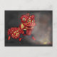 Mi ilustracion de bailarines chinos de leones rojos y amarillos con humo y petardos para celebrar el Año Nuevo chino.