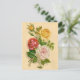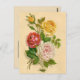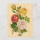 Una elegante postal con un ilustracion reproductivo vintage de un ramo de flores, que incluye rosas amarillas, rosas y blancas. Una postal floral nostálgica y bonito.