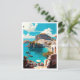 Postal Ilustracion de viaje vintage de Lindos Grecia