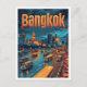 Postal Ilustracion de viajes de arte antiguo de Bangkok T
