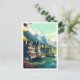 Postal Ilustracion de viajes de época de la Suiza de Inte