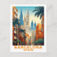 Postal Ilustracion de Viajes Vintage de Barcelona