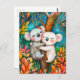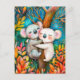 Postal Ilustracion del abrazo de koalas en los bosques de