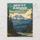 Postal retro del ilustracion del Parque Nacional de Mount Rainier.