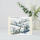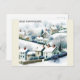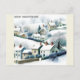 A cualquiera le encantaría recibir esta postal de viaje con un ilustracion acuático de un pueblo de invierno nevado en New Hampshire.