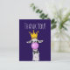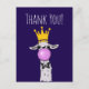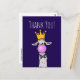 Tarjeta postal de agradecimiento una divertida llama soplando una burbuja mientras masca chicle. Lleva una corona dorada y una pajarita negra. Esta linda llama solo es visible desde el cuello hacia arriba. tiene un cuello cómicamente largo.