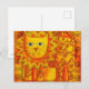 Postal Ilustración en acuarela de león con patrones
