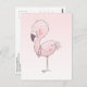 Postal Ilustracion Flamingo Rosa