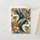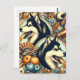 Postal Ilustracion Husky retro siberiano
