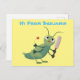 A este lindo críquet verde le encanta jugar al deporte. Dibujado en un estilo personalizado de buggy feliz.