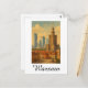 Esta es una impresionante obra de arte de color de Varsovia Polonia en una postal que muestra el horizonte de la capital polaca con sus famosos edificios y monumentos".
