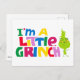 This vibrant and humorous graphic features the self-proclamation: "I'M A LITTLE GRINCH!" The text is rendered in massive, playful, multi-colored block letters that pop against the white background. Standing next to the text is a stylized, bright green cartoon of the Grinch, sporting a mischievous smirk and pointing proudly. This bold, colorful design is perfect for apparel, stationery, or decor for anyone who loves the holidays but needs a cheeky excuse for their occasional bad mood!