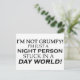 ¡No soy gruñón! ¡Solo soy una persona de noche atrapada en un mundo de día! ¿Alguna vez te sientes fuera de sintonía con el resto del mundo Ver todos nuestros diseños en tazas, tazas, camisetas, sudaderas, gorras y otros regalos y ropa.