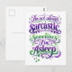This is a postcard that reads, "I'm not always sarcastic. Sometimes I'm asleep."