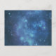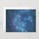 Un ilustracion gráfico del espacio en tonos azules oscuros y claros y morados polvorientos. Una representación artística de la vastedad del espacio con estrellas, nubes, nebulosas y galaxias brillando e iluminando los extremos del espacio exterior con una atmósfera de ensueño.