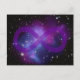 Un símbolo de infinito púrpura semitransparente contra una imagen de espacio púrpura. Galaxy Cluster MACS J0717 gracias al programa NASA y Hubble.