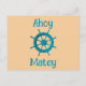 Postcard Post Card con plantillas de personalizable para la tipografía de texto de Ahoy Matey también el barco hacia y desde el formato de la parte trasera e impreso con el volante Rústico Weathered de la rueda de dirección del barco Foto Imagen con un color de fondo de arena bronceado de verano es parte de nuestras colecciones de fotografía originales en expansión de TheFabricSeal impresas en la tienda a petición Zazzle.com #ZazzleMade ©️ Original. https://www.zazzle.com/store/thefabricseal Perfecto para amantes del mar y el una imagen fotográfica encantadora y caprichosa será una adición ideal para su estilo personal, casa, oficina o barco. Abran el espíritu del mar y las naves acuáticas. Gracias, Hola, Pensando en Ti, Te amo o Eres Invitado, feliz cumpleaños, feliz matrimonio, felicitaciones y tantas otras razones para tu personalizado impreso tarjetas postales son regalos reflexivos que siempre son la manera perfecta de expresarte. También podrá comprar nuestras tarjetas de felicitación, papel de pañales y envolturas, bolsas de regalo, cintas de regalo y etiquetas de regalo. Estos son grandes regalos para la familia, los amigos y usted, por supuesto. Haga clic en Personalize It y, a continuación, utilice la herramienta Editar el diseño para obtener más opciones de personalización si fuera necesario, incluyendo la transferencia de este diseño a otros productos de Zazzle. Muchas gracias por elegir nuestra tienda online. Agradecemos su apoyo. Disfruta de tu experiencia de compras. Cindy y Jeff